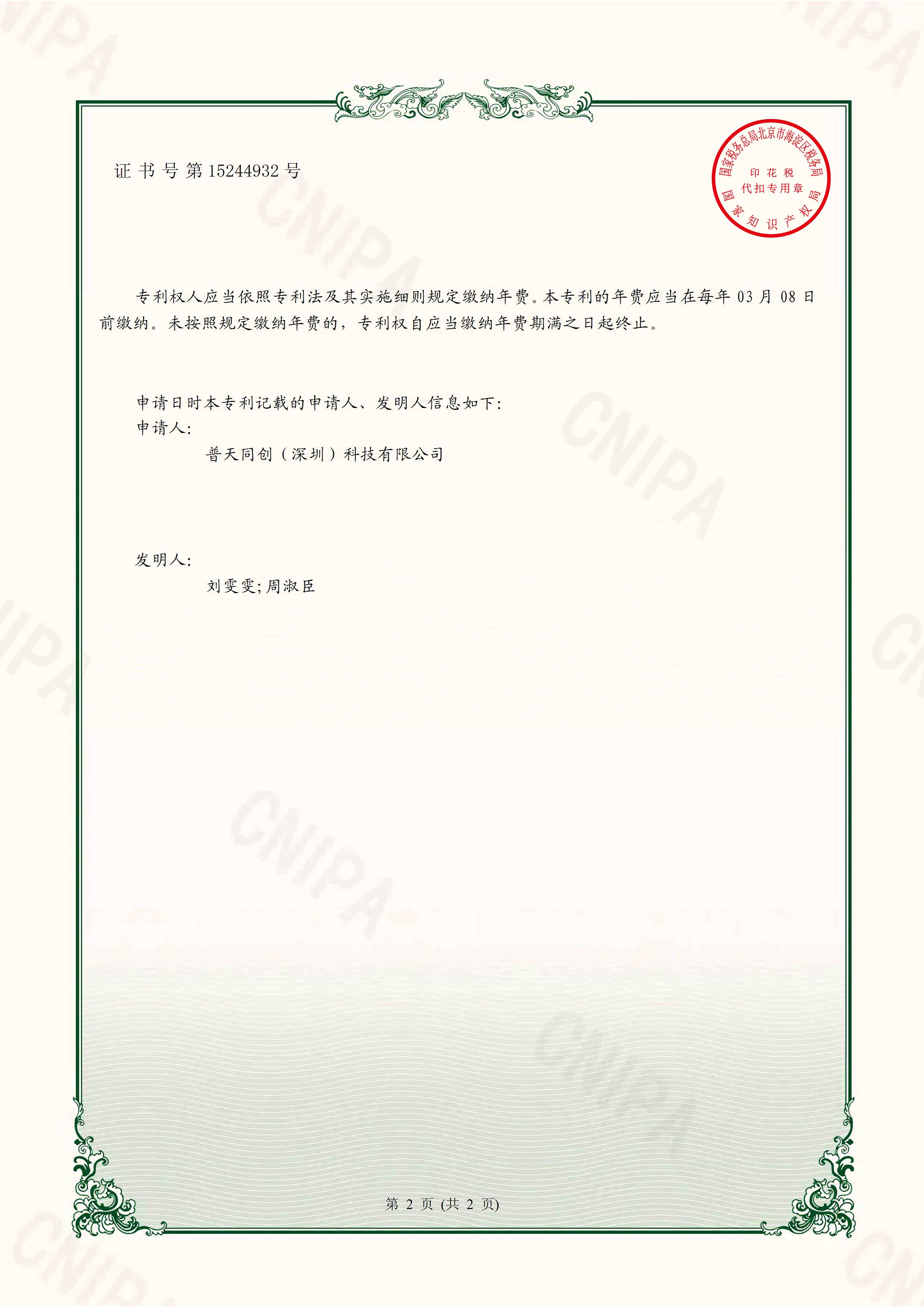 國家實用新型專利證書