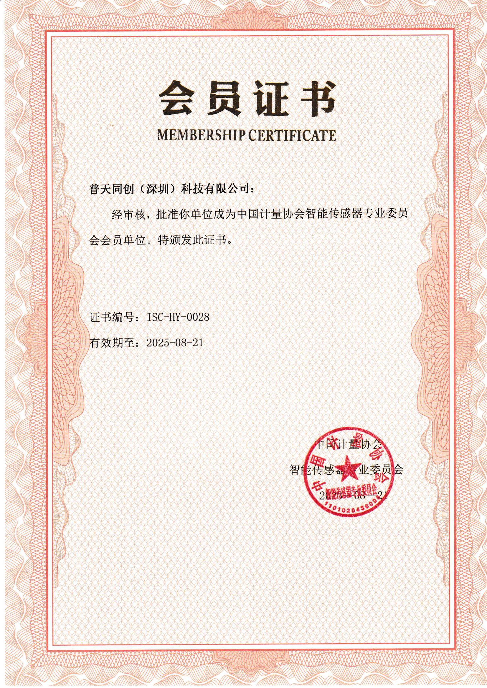 計量協會會員證書
