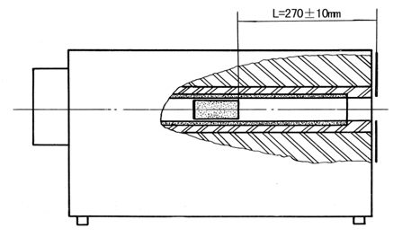 爐體中心為加熱管,加熱管內置一“靶”,組成圓錐—圓柱復合腔體?!鞍小痹诩訜峁苤械奈恢脮绊懞隗w腔的黑度系數,其位置由“靶”的端面至黑面板的距離L來保證。L=270±10mm。