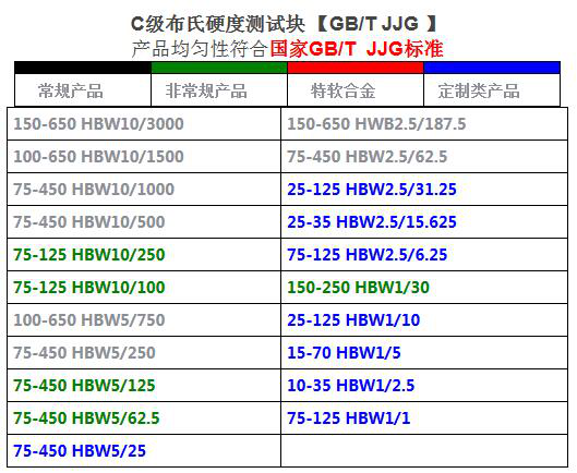 國家標準(GB231-84)規定布氏硬度試驗時,常用的0.102F/D的比例為30、10、2.5三種,根據金屬材料的種類、試樣硬度范圍和厚度的不同,按下表(布氏硬度試驗規范)選擇試驗壓頭(鋼頭)的直徑D、試驗力F及保持時間。