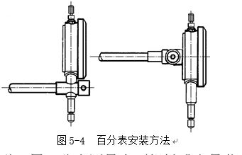 1 用百分表或千分表測量零件時,測量桿必須垂直于被測量表面。圖5-4所示。即使測量桿的軸線與被測量尺寸的方向一致,否則將使測量桿活動不靈活或使測量結果不準確。