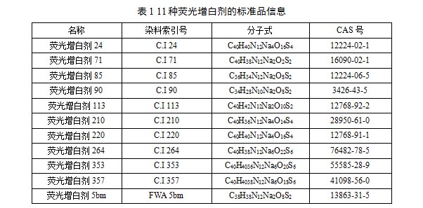 11種熒光增白劑標準品的基本信息見表1。