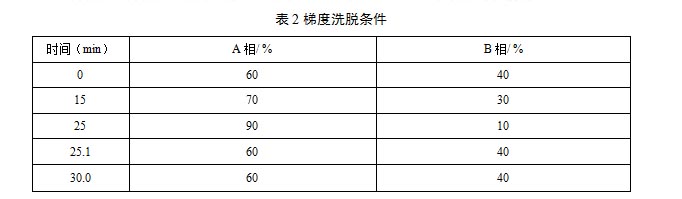 5.2.2流動相:流動相A相為甲醇,B相為TBA溶液(3.1.6),流動相梯度洗脫條件如表2。
