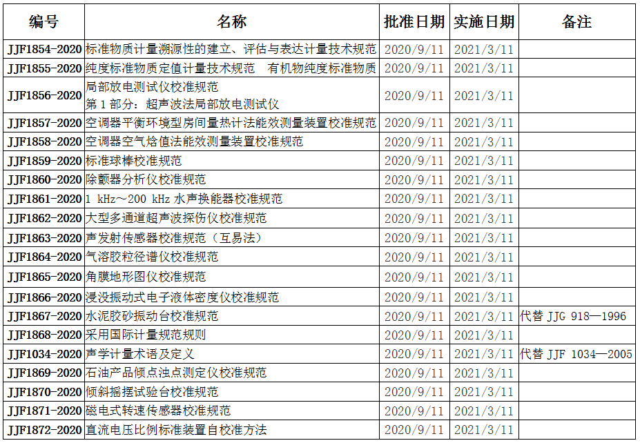 2020年9月24日,市場監管總局發布了一則公告,表明根據《中華人民共和國計量法》有關規定,正式發布《標準物質計量溯源性的建立、評估與表達計量技術規范》等20個國家計量技術規范。
