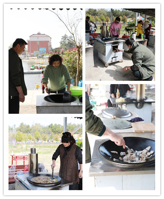 所有食材和工具都是自備的,自己動手才能完美的體驗其中的樂趣呀!所有人都積極參與進來,分工明確,各盡其職。細膩的女同事們正在有條不紊地清洗著生菜、小龍蝦等食材;長廊下的鐵鍋,火被燒得旺旺的,手藝高超的同事們為大家呈現獨家秘方的原生態炒雞;燒炭、架爐子,烤串,有經驗的男同事已經開始進行烤串的預熱工作了。很快就做好了燒烤前的各項準備!