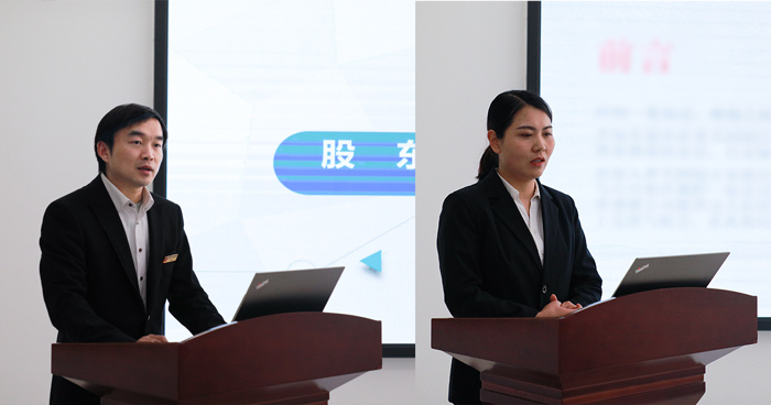 股東評選大會上,經過層層評選推薦,宣傳部的周赫和業務部的曹鳳勤,以強烈的主人翁意識,認真勤奮的工作態度,求真務實的工作作風,在公司發展歷程中做出了杰出貢獻,保障公司良好運作和快速發展。同時,他們都曾根據公司需要擔任公司多部門崗位,主動學習能力強也是他們的一大優點,合理運用時間來提升自己,更好的為公司服務。對此,公司將予以晉升股東為鼓勵,希望他們再接再厲?,F場氛圍熱烈,也極大激勵了全體員工的奮斗精神,以他們為目標,紛紛表現出斗志昂揚的態度,也要努力成為公司股東的一份子。“以老板的心態打工,你早晚會成為公司的股東”這句話不是我們貼在會議室墻上的一句標簽,而是普天同創為全體員工搭建的實實在在的企業晉升通道。