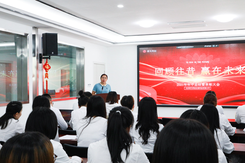 會議最后,岳總經理對上半年公司整體數據進行匯總,充分肯定同事們上半年所取得成績,感謝這些先進工作者在2021年上半年的突出表現,號召大家學習她們的工作態度、方式方法;同時也指出了工作中存在的突出問題鼓勵全體員工應跟隨集團腳步積極轉型,實現公司與個人的共同成長進步。